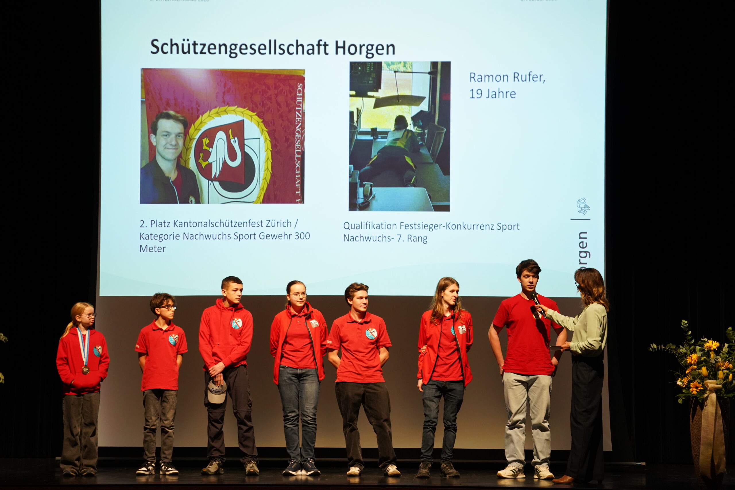 Geehrt wurden Athletinnen und Athleten mit Wohnsitz in Horgen oder Mitgliedschaft in einem Horgner Sportverein, die im vergangenen Jahr Podestplätze an Schweizermeisterschaften erreichten oder an Europa- und Weltmeisterschaften sowie Olympischen Spielen teilnahmen.